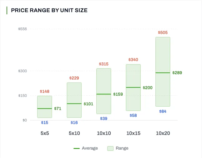 See Market High and low rates by unit size and benchmarked to county and state averages